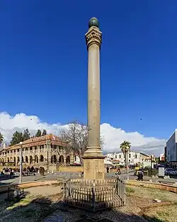 The old Ottoman administrative headquarters (the Saray) was replaced in 1904 by a new building containing Law Courts, the Land Registry, and the Forestry, Customs, and Nicosia Commissioner's Offices.[44] Adjacent was the Nicosia Police headquarters, while opposite were the General Post Office and the Telegraph Office.[49] A Venetian Column, previously in a fenced courtyard near the Saray,[50] was restored on a new site in the summer of 1915 in the middle of Saray Square. The Nicosia column was presumably erected in compliment to the reigning Doge Francesco Donato about the year 1550.[44]