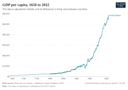 A chart showing the rise of GDP per capita in America, indicating a higher standard of living