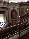 In 1972 the Allied Arts Council and the City of Yakima began working together to transfer the building to public ownership. Part of this effort included successfully placing the theatre on the National Register of Historic Places on April 11, 1973. Shortly after ownership was transferred to the City, the theatre was severely damaged by a fire on August 11, 1975,[5] except for its stage-house, which was virtually untouched, with only the walls of the audience section remaining standing. One of the few items saved from the fire was a Steinway grand piano (which had been signed by Henry E. Steinway), the president of Steinway and Sons.[6] Subsequently, the theatre was painstakingly renovated to its original 1920s state, although a basement with restrooms and a meeting room was added. Famed artist, Anthony Heinsbergen —who had painted the original murals on the Theatre's ceiling as his first paid commission—came out of retirement to repaint the dome. This was his last commissioned work. Governor Dixie Lee Ray dedicated the rebuilt Capitol Theatre on November 4, 1978 at its grand re-opening ceremony, which featured a sold-out performance by Bob Hope.[7][8]