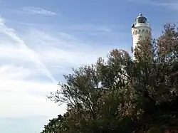 Capo d'Anzio Lighthouse (Italian: Faro di Capo d'Anzio) is an active lighthouse located on the same name Cape on a rocky cliff overlooking the ruins of Nero's villa, close to the town of Anzio, Lazio on the Tyrrhenian Sea.
