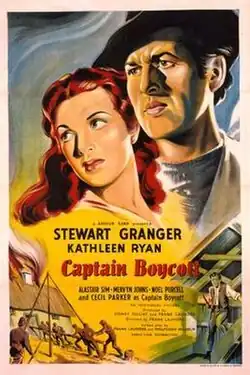 Captain Boycott is a 1947 British historical drama film directed by Frank Launder and starring Stewart Granger, Kathleen Ryan, Mervyn Johns, Alastair Sim and Cecil Parker.[2] Robert Donat makes a cameo appearance as the Irish nationalist leader Charles Stewart Parnell.[3] The film explains how the word boycott appeared in the English language. Ironically, the titular character plays a secondary role in the film, as an anti-hero, and the hero of the film is Hugh Davin.