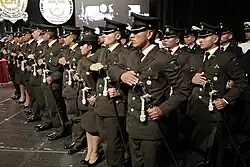 The school accepted more students than how many actually become military officers.[6] Those who endured the exercises and practices of the school graduate and became officers.[6][8] The first women began attending the school in 2000.[9] On 30 November 2018, the Star of Captain General Gerardo Barrios was established and was awarded to military officers who graduate from the school.[10] The school had a song called the "Himno de la EMCGGB" or "Hymn of the EMCGGB."[11]