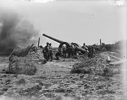 - ^ The XIII Corps heavy artillery comprised three heavy artillery groups and four French mortar batteries, with howitzers: two 12-inch, eight 9.2-inch, four 8-inch, twenty-four 6-inch; guns: two 6-inch, sixteen 60-pounder, four 4.7-inch; mortars: sixteen 240 mm, which gave a heavy gun or howitzer for 47 yd (43 m) of front and a field gun or howitzer for each 17 yd (16 m)[24]