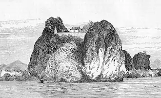 The expedition had first to run the gauntlet of the defences of Ninh Bình, whose citadel was built on a massive crag overlooking the Red River and was defended by a number of cannon which completely commanded the passage. The flotilla reached Ninh Bình on the afternoon of 24 March, to find the gunboat Carabine waiting. This was a critical moment. The garrison of the citadel stood to arms at the French approach, and according to Rivière 'their guns, if well handled, could have annihilated us'. However, the governor of Ninh Bình declined to open fire, being 'one of those Asiatics who do not normally concern themselves with the misfortunes of their colleagues unless they affect them personally'. The expedition passed Ninh Bình unharmed, and anchored that evening at the entrance to the Nam Định canal, where it was joined by the gunboats Pluvier and Surprise.