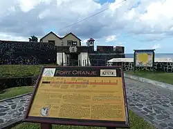 A British expedition of 3,000 troops sailed from Saint Lucia on 30 January 1781.[6] Rodney left behind ships to monitor the French on Martinique. He also sent Samuel Hood ahead to stop any merchant ships escaping from the harbour. The main force arrived off St. Eustatius on 3 February. Rodney's ships took up position to neutralise any shore batteries. Two or three shots were fired from the only Dutch warship on the roadstead, the frigate Mars under Captain Count Van Bijland.[7] Instead of disembarking the troops and launching an immediate assault, Rodney sent a message to Governor Johannes de Graaff suggesting that he surrender to avoid bloodshed. De Graaff agreed to the proposal and surrendered. De Graaff had ten guns in Fort Orange and sixty soldiers. Rodney had over 1,000 guns on his ships. By the following day the nearby islands of Saint Martin and Saba had also surrendered.[6]
