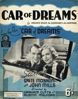 Car of Dreams is a 1935 British romantic comedy film directed by Graham Cutts and Austin Melford and starring Grete Mosheim, John Mills, Norah Howard and Robertson Hare.[1] A tycoon's son falls in love with a woman who works at his father's factory.[2] It was based on the 1934 Hungarian film The Dream Car.[3] It was the first Hungarian film to be shot in English.[4]