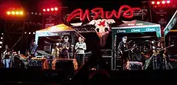 They are known for their phleng phuea chiwit (เพลงเพื่อชีวิต), or 'songs for life', which came to prominence through the protest songs of the 1970s political upheaval in Thailand, especially from the band Caravan. Carabao have blended the acoustic / folk style of 'phuea chiwit' with other forms of Thai music, western rock and country music, as well as various kinds of world music, like Latin music and reggae, earning such labels as 'ethnic rockers' and 'Kings of 3Cha' or 'Rolling Stones of Asia'.[2] MTV Asia hailed them as a "veteran songs-for-life band".[3]