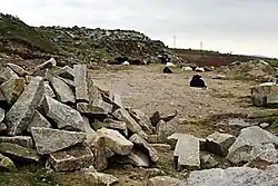 The hill was once famous for its copper mines but these are now closed.[4] The South Caradon Copper Mine, 1 km to the SW of the transmitter, was the biggest copper mine in the UK in its heyday in the second half of the 19th century. Other disused copper and tin mines are scattered around the base of the hill, including the Wheal Phoenix, well known among mineral collectors. The ruins of the Prince of Wales engine house are prominent at Wheal Phoenix.[5] Granite was also quarried nearby. The mining area around the southwest base of the hill form part of Crow's Nest SSSI (Site of Special Scientific Interest).[4]