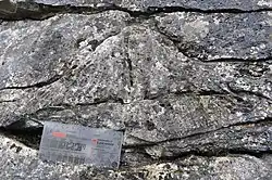 There are limited outcrops on the Isle of Man[7] and more extensive ones in Anglesey notably along the Menai Strait, around Benllech and towards Puffin Island.[8] The Carboniferous Limestone belt extends eastwards to form the Great Orme at Llandudno, the neighbouring Little Orme and a zone of country in inland Denbighshire running through Denbigh and Ruthin. A broader belt forms high ground immediately east of the Clwydian Hills extending south to form the impressive west-facing Eglwyseg escarpment north of Llangollen and continuing as a broken outcrop southwards beyond Oswestry.[9] There are a few outcrops in Shropshire such as Titterstone Clee Hill and at Little Wenlock.