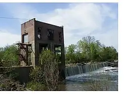 A dam was erected on the Deep River in Carbonton in the early 1800s. In the 1920s, the Carolina Power & Light Company established a hydroelectric plant at the dam, making it the first power plant in the Sandhills region. In 2005, the dam was removed to improve the river ecosystem, but the powerhouse was unaltered.[2]