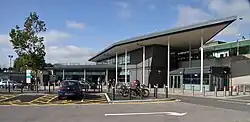 The majority of facilities are in the main concourse, including ticket desks and machines, cash machines, an information desk, departure and arrival screens, public telephones, a newsagent, and food shops. The station has the only First Class waiting room in Wales.[40][41] Outside, a pay-and-display car park provides 248 spaces.[42]