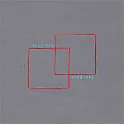 The cover art of Cardinal, designed by Hall, depicts two red squares intertwined on a gray background. It reflects Hall's interest in simple colors and shapes, imagery which defined the band since the beginning. In addition, several lyrics on the album reference the color red either directly or through metaphor, most notably in "Cadmium" and "Waveform". Likewise, the album's title references the color of a cardinal, which Hall interpreted as a harbinger of creativity. Hall's inspiration for the cover included the writer George Saunders. "I sort of imagined that square number one in the lower left-hand side is a letter that I’m writing and then the second squares shows that I’m sending it off and my words are traveling."[15]