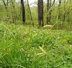 Carex cherokeensis, commonly called Cherokee sedge,[1] is a species of flowering plant in the sedge family (Cyperaceae). It is native to the United States where it is found in the Southeast.[2] Its natural habitat is in high-nutrient, often calcareous soil, in bottomland forests, mesic forests, and wet meadows.[3][4]