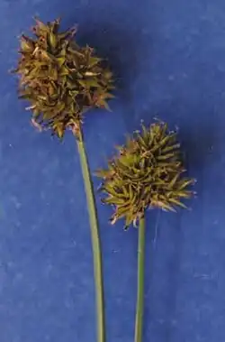 Carex microptera is a species of sedge known by the common name smallwing sedge. It is native to western North America, including most all of western Canada and the western United States. It occurs in moist mountain habitat such as meadows and riverbanks. This sedge produces dense clumps of erect stems over 20 centimeters tall and up to about a meter in height. The inflorescence is a dense cluster of green or brown spikes packed tightly and indistinct from each other.