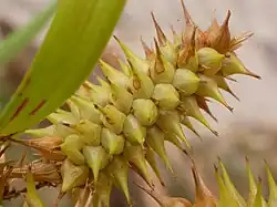 Fruit develops in late spring to summer. Pistillate spikes form clusters of seeds. Each pistillate spike contains 20 to 150 achenes.[3]