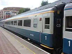In January 2008 it commenced a contract to hire Mark 3s to First Hull Trains for weekend London King's Cross to Doncaster services.[4][5][6] In April 2008, Cargo-D commenced providing Mark 3s to Wrexham & Shropshire while its own Mark 3s were overhauled for service. In December 2008, it commenced a contract to provide four Mark 2s to First Great Western for a Cardiff to Taunton service.[7]