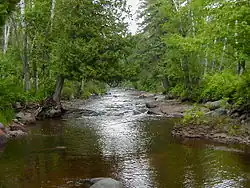 The Caribou River is a 15.0-mile-long (24.1 km)[1] river in northern Minnesota, the United States. It rises in a swamp about .6 miles (1 km) south of Morris Lake and two miles (3.2 km) east of Echo Lake, near the Lake/Cook County line, at an altitude about 1620 feet (494 m) above sea level. It descends some 1,020 (311 m.) feet in elevation as it flows south to its mouth at Lake Superior, also near the eastern border of Lake County.[2]