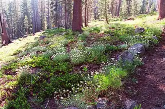 The forest is lodgepole pine, Jeffrey pine, ponderosa pine, Douglas fir, white and red fir, western white pine, incense cedar, and hemlock.