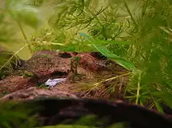 Larvae are born not more than 3 mm (0.12 in) in length, and grow to full size through molting.[4] The gestation period is about 30 days. Caution must be taken with filtration when the young when they are in an aquarium, as they can be pulled into the intake.
