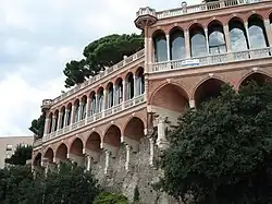 Villa Figari, better known as Villa Mylius, is a neo-Gothic style residence, built in 1855 a short distance from the Alessian basilica, whose garden overlooks Corso Aurelio Saffi with an elegant loggia-belvedere; built on the structure of the ancient walls of S. Margherita, this loggia was originally suspended on the cliffs that bordered the hill of Carignano by the sea.[8][38]