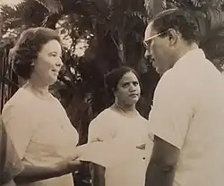 A graduate of St. John's College, Belize, Sister Caritas entered the Mercies and had further studies in the United States. She then taught sociology and philosophy of education at University of Belize from 1968 to 1973, residing in St. Ignatius parish from 1970 to 1973 and directing the choir there. A promoter of women’s issues, she actively supported Sr. Consuelo Torres’ decision to allow girls to remain at St. Catherine Academy after having a child. The photo shows her (center) and Sr. Yvonne Hunter receiving a petition from Charles M. Woods Sr. after a peaceful protest parade in Belize town over this issue.[1]: 170