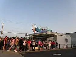Carl Sponseller founded Carl's Frozen Custard stand in 1947.[5] The original building was registered as a National Landmark and is an official register of Historic Places in 2005. Since 1947, the 1940s, Electro Freeze machines have produced frozen custard daily. Custard differs from ice cream because it contains eggs and sells only three flavors, Vanilla, Chocolate, and Strawberry. When Carl retired, he passed it to his brothers, Paul Sponseller and Herbert Sponseller. When they retired, it was passed to Ramona Sponseller (Settle), Daniel Sponseller, and Cristina Sponseller (McCann), keeping it in the family. The stand has what can only be called a devoted following, so the line of customers often stretches around the building, even in bad weather.[6][7] Carl's is seasonal, and closed each year from the Sunday before Thanksgiving until the Friday of Presidents Day Weekend.