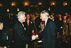 After his term as prime minister, Bildt was active as a mediator in the Balkans conflict, serving as the European Union Special Envoy to Former Yugoslavia from June 1995, co-chairman of the Dayton Peace Conference that led to the Dayton Peace Accords in November 1995, and High Representative for Bosnia and Herzegovina from December 1995 to June 1997 immediately after the Bosnian War. From 1999 to 2001, he served as the United Nations Secretary General's Special Envoy for the Balkans.[9]