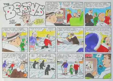 Grubert's The Berrys was syndicated from 1942 to 1974, and during that long run, the strip chronicled the lives of the Berry family members–father Peter, mother Pat, daughter Jill, son Jackie and baby brother Jimmie.