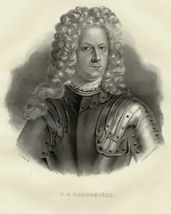 Count Carl Gustav Rehnskiöld[a] (6 August 1651 – 29 January 1722) was a Swedish Field Marshal (fältmarskalk) and Royal Councillor. He was mentor and chief military advisor to King Charles XII of Sweden, and served as deputy commander-in-chief of the Carolean Army, an army he assisted both in its education and development.