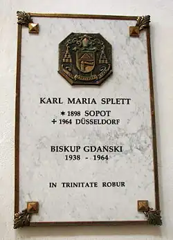 Splett succeeded Edward O'Rourke as the head of the Roman Catholic Diocese of Danzig in 1938. While the Nazis, who had ruled the Free State of Danzig since 1933, tried to install their own candidate, Paul Schütz, as successor of Bishop O'Rourke, Splett was appointed as bishop by the pope. Splett also refused to appoint Schütz as vicar general, as demanded by the local Nazis.[6] Zofia Waszkiewicz claims that he was supported by Forster, who became his protector.[7][8]
