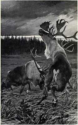 Rungius was an avid sportsman, and spent more time in the wilderness than other artists. By direct observation in nature, he was able to gain an exceptional insight into the animals and their environment. Rungius painted both landscapes and wildlife, often with both into a single picture. He situated animals in their natural environment, a practice that was new to painting in early twentieth century North America. His paintings are highly romanticized, and represent an Eden-like world without any signs of a human impact.[2]