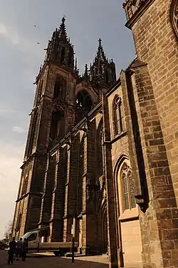 As a monument conservator, he led the reconstruction of the Friedrichsbaues of Heidelberg Castle (1890-1900), the Romanesque monastery church of St. Gangolf in Münchenlohra in Nordhausen (1882-1885) and the Church of Saint-Pierre-le-Jeune in Strasbourg (1897-1901). He added the pair of 81 metre spires to the Meissen Cathedral in a highly convincing neo-Gothic style from 1903 to 1908. This now forms a critical part of the Meissen World Heritage Site.