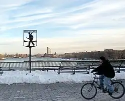 East River Park was renamed Carl Schurz Park in 1911.[3] The park was reconstructed in 1935 by Robert Moses, due to the creation of the FDR Drive,[4] with revised landscaping by Maud Sargent. The park's restoration from a neglected state in the early 1970s was due to the energies of a neighborhood group, the not-for-profit Carl Schurz Park Conservancy (incorporated 1974), formed originally to clean up the park's single playground.[5]