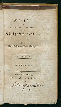 Carl Ulisses von Salis-Marschlins or Karl or Charles (28 September 1762 in Marschlins – 16 January 1818) was a Swiss naturalist interested in botany, entomology, and conchology.