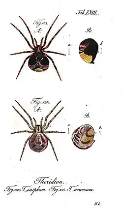 | ^ | Walckenaer, Charles Athanase: Histoire naturelle des insectes. Aptères 1. Paris, 1837, pp. 1–682. [Citation taken from P. Sacher, 1988, p. 141; modified] |