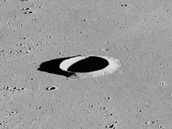 Carlini is a small lunar impact crater located in the Mare Imbrium. It was named after Italian astronomer Francesco Carlini.[1] The crater is bowl-shaped with a small central floor. It has a higher albedo than the surrounding mare, making it prominent due to its isolated location. To the south is a wrinkle ridge named Dorsum Zirkel, and farther south lies the peak Mons La Hire.