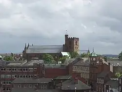 Carlisle Cathedral, formally the Cathedral Church of the Holy and Undivided Trinity in Carlisle,[2] is a Grade I listed Anglican cathedral in the city of Carlisle, Cumbria, England. It was founded as an Augustinian priory and became a cathedral in 1133. It is also the seat of the Bishop of Carlisle.[3]