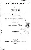 The 1833 outbreak of the First Carlist War, usually considered the birth moment of Carlism,[2] has almost immediately triggered a literary response. The literary genre which responded first was drama. There were a number of theatrical pieces written as the war was unfolding and it seems that most of them were actually staged, as they served mostly propagandistic purpose of mobilizing support; only few were rather comments to recent or even ongoing events.[3] Anti-Carlism clearly prevailed, a phenomenon obviously linked to Cristinos controlling almost all the urban zones, centers of cultural and theatrical life.[4] Most of the dramas seem to be short, one-act pieces, characterized by strong message and boldly sketched protagonists. Unlike in case of poetry, there is no anthology available. It seems that the anti-Carlist dramas fall into two categories: satiric pieces closely related to recent or ongoing events and dramas in historical setting, advancing a general Liberal outlook and in particular aimed against Inquisition and the Absolutist formula.