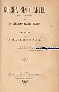 When Spanish novel of the mid-19th century gradually emerged as important cultural weapon against the Carlists, their own response on the field was meager. Navarro Villoslada, now converted into legitimism, fathered a number of acclaimed and popular historical romantic novels, yet they are set in earlier times and at best might be viewed as offering a general Traditionalist perspective.[45] Similarly Gabino Tejado Rodriguez, an active Carlist politician and editor, in his historical novels steered clear of Carlist themes, again saturating them with vague Traditionalism.[46] Some sympathy for the Carlist cause might be traced in La Gaviota by Fernán Caballero (1849), a novel about the old and the new confronting each other in an Andalusian town.[47] The only novel which might be considered obvious exaltation of Carlism is El orgullo y el amor by Manuel Ibo Alfaro (1855).[48] Narciso Blanch e Illa, later a combatant during the Third Carlist War, in his historical novel Doce años de regencia (1863) used the romantic 15th-century setting to advocate the Carlist cause.[49] Antonio Aparisi y Guijarro did not write belles-lettres and would not merit attention here if it had not been for his later peculiar role; in literature written two generations afterwards his writings would be presented as responsible for Carlist deviation of other literary protagonists.[50]