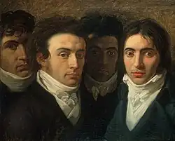 From 1804 until his death, Porta worked as government employee. He was a leading member of Milanese intellectual circles. In 1816 he opened his own cameretta, a gathering of progressive friends, including Manzoni, Grossi, Berchet and other Romantics, who met once a week to discuss political and literary matters. It was in honor of Porta that Manzoni wrote his only poem in the Lombard language.[3] The cameretta portiana included Giuseppe Bossi, who painted a group portrait of four Amici della Cameretta Portiana.