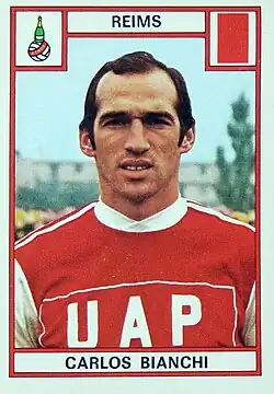 During his tenure at Reims, Bianchi showed his scoring touch, scoring 107 goals in four seasons and being the top scorer in the French championship in 1974, 1976 and 1977 marking 30, 34 and 28 goals, respectively.[10] In 1977, he joined Paris Saint-Germain in which Bianchi was again the top scorer of the league in two seasons spent in the club.[10] Because of the club's financial problems, Bianchi was transferred to Paris St. Germain in 1977.[11]
