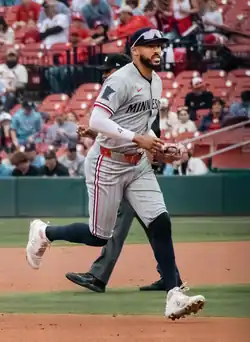 On March 22, 2022, Correa signed a three-year contract worth $105.3 million with the Minnesota Twins.[87] The contract included opt-out provisions after the first and second seasons.[88] The $35.1 million average annual salary became the highest for an infielder, topping Anthony Rendon's $35 million annual salary, and was the fourth-highest salary in the AL.[48][89] He joined center fielder Byron Buxton on the Twins, making them the third pair of players picked first and second in the same draft to then play for one club.[90]