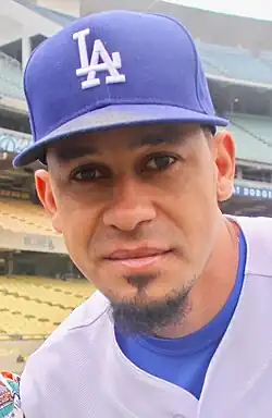 In his second major league start on September 17, 2014, against the Colorado Rockies, Frías became the first pitcher in the modern era to yield 10 hits while logging fewer than three outs.[11] He was pulled in the first inning and charged with 8 runs.[12][13] The rest of his 15 appearances for the Dodgers were out of the bullpen. Overall, he was 1–1 with a 6.12 ERA in 32.1 innings pitched.[1] He was assigned to the new AAA team, the Oklahoma City Dodgers to start 2015.[14] He was promoted to the Majors on April 26 and won his first three decisions. However, on May 24 he allowed 10 runs in only four innings of work, tying the Los Angeles Dodgers record for most runs allowed in a game.[15] He made 13 starts (and four relief appearances) for the Dodgers in 2015 and was 5–5 with a 4.06 ERA.[16] He only appeared in one game for the Dodgers in 2016, pitching four scoreless innings of relief on July 7 against the San Diego Padres.[17] He also made eight appearances (four starts) for the Oklahoma City Dodgers with a 3–3 record and 4.46 ERA while spending most of the season on the minor league disabled list.[2] On January 25, 2017, Frías was designated for assignment by the Dodgers.[18]