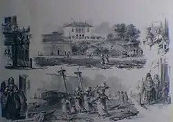 Morel returned to Buenos Aires in 1844, and in 1845 published his famous album of lithographs called "Manners and Customs of the Río de la Plata".[1] During the years after 1844 his work declined in quality. His Combate de los bajíos de Arregui appeared in 1848 and then no other works are known until 1870.[b] He moved to the home of his half sister, Indalecia Morel Dupuy de Dupuy, in 1870. She had been running a bakery in Buenos Aires to make a living after the murder of her husband, and had moved to Quilmes in 1853 after his expropriated property had been returned. She died in 1879.[3]