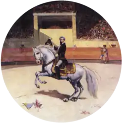 He also became a notable sportsman, a perfect gentleman-rider: a skillful marksman, fencer, and horse rider. He also became a famous amateur bullfighter, both as a cavaleiro (on horseback) and as a bandarilheiro. An enthusiast of the sport, he had a bullring built in Golegã, and frequently took part in bullfighting spectacles for charity: profits from the opening performance of the Golegã arena reverted to the local hospital, and his last performance, in 1893, was to aid the victims of the 1893 Azores hurricane.[1]