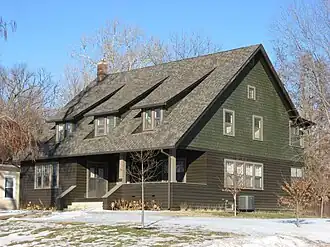 Carlos and Anne Recker House, also known as the Recker-Aley-Ajamie House, is a historic home located at Indianapolis, Marion County, Indiana. It was built in 1908, and is a 1+1⁄2-story, Bungalow / American Craftsman style frame dwelling. It has a steeply pitched side-gable roof with dormers. The house was built to plans prepared by Gustav Stickley through his Craftsman Home Builder's Club.[2]: 5