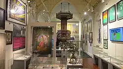 The museum consists of four exhibition rooms, housing permanent and temporary displays. It holds a diverse collection which includes objects that cover the archaeological, history, social history and folk life of the local area. It is designated to collect archaeological finds by the National Museum of Ireland.[1] One of the most notable objects on display is the 19th century pulpit from Carlow Cathedral which was included in The Irish Times A History of Ireland in 100 Objects.[4] Other notable objects in the Museum's collections pertain to John Tyndall, Kevin Barry, Captain Myles Kehoe, and the Carlow Sugar Factory.[5]