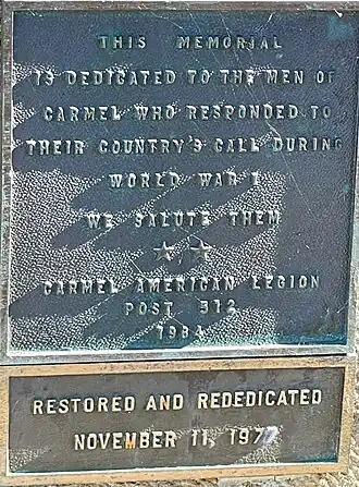- ^ a b c "Carmel-by-the-Sea World War I Memorial Arch". www.worldwar1centennial.org. Retrieved 2021-10-02.