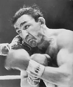 Carmen Basilio (born Carmine Basilio, April 2, 1927 – November 7, 2012) was an American professional boxer who was a two-time Undisputed Welterweight Champion and Undisputed Middleweight champion, beating Sugar Ray Robinson for the latter title.[1][2] An iron-chinned pressure fighter, Basilio was a combination puncher who had great stamina and eventually wore many of his opponents down with vicious attacks to the head and body.