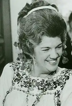 Carmen Margarita Zapata (July 15, 1927 – January 5, 2014) often referred to as "The First Lady of the Hispanic Theater"[1] was an American actress best known for her role in the PBS bilingual children's program Villa Alegre. Zapata was also the co-founder and director of the Bilingual Foundation of the Arts in Los Angeles. Zapata took an active part in the Chicano movement of the 1960s and 1970s.[2] Zapata was born in New York City to Julio Zapata, a Mexican immigrant, and Ramona Roca, an Argentine immigrant.[3][4]
